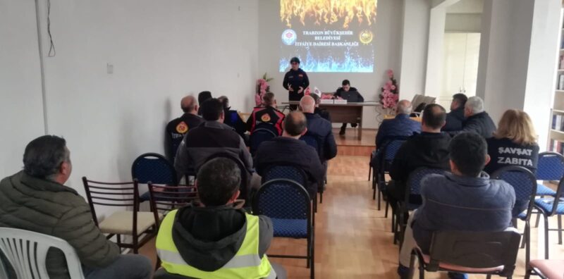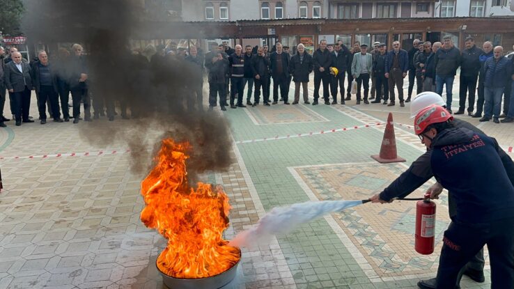 Tatbikat kapsamında Trabzon Büyükşehir Belediyesi İtfaiye Çavuşu Egemen İskender ve itfaiye eri Mustafa Gedikli katılımcılara yangın söndürme ve ilk yardım konusunda detaylı bilgiler verdi. Yangın söndürme tüpünün nasıl kullanılacağına dair pratik bilgileri paylaşan İtfaiye Çavuşu İskender, acil durumlarda yapılması gereken adımları uygulamalı olarak gösterdi.